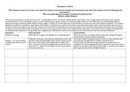 · Essay, Pages 2 ( words) Views. In the novel To Kill a Mockingbird by Harper Lee, true courage is showed by not giving up without worrying about the consequences and doing what is right even if it puts yourself or a loved one in danger. Atticus is one of the many characters who shows courage. He does this by taking on a court case of Tom · What contrasts Courage from cowardness is that courage in To Kill a Mockingbird means to do what is right whether you win or lose, instead of using your gut reaction. Harper Lee uses the Ewell family to define cowardness. Cowardness is someone who lacks courage and let’s fear to prevent them from doing what is right. Bob Ewell is a coward · Josh Nevett 9A MOCKINGBIRD ESSAY To Kill a Mockingbird is a book about courage in many different situations from many different characters. The definition of courage is “the quality of mind or spirit that enables a person to
